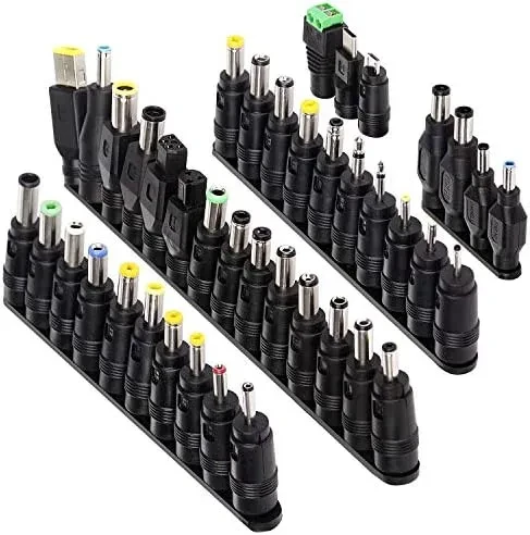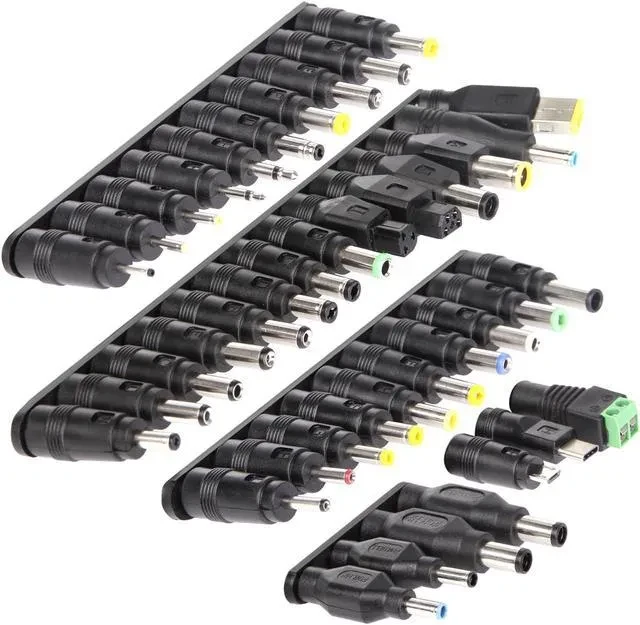 2021 Latest 41pcs universal DC plugs power converter Match with external laptop DC power battery or laptop universal AC power adapter to charge for your PC. Used for laptop repairing, parts replacement, external power source or on-board transformer.