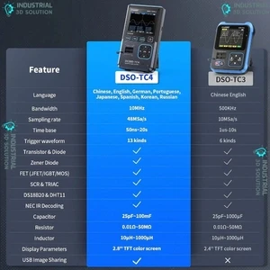 The FNIRSI DSO-TC4 is an advanced 3-in-1 multifunction electronic diagnostic device that combines the capabilities of a Digital Oscilloscope, a Transistor Tester, and a Signal Generator into a single portable tool. Engineered for electronics enthusiasts, students, technicians, and engineers, this compact unit is ideal for efficient and accurate signal measurement, circuit debugging, and component identification.