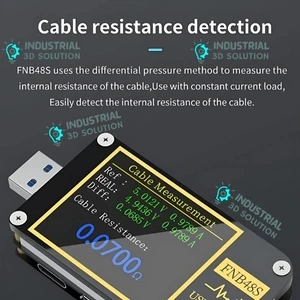 With its intelligent detection system, the FNB48S not only measures standard USB outputs but also supports Type-C, Micro USB, and USB-A connections, ensuring universal compatibility. Its compact and portable design makes it perfect for both lab and field use, while its rugged build ensures durability over long-term operation.