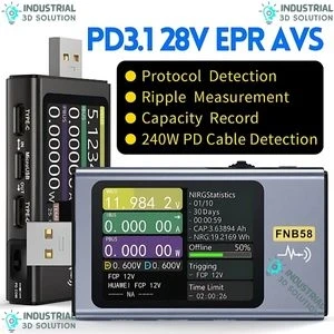 The FNIRSI FNB58 USB Fast Charge Tester is an essential tool for anyone looking to monitor and analyze the charging performance of their USB-powered devices. Designed with high-precision sensors, this compact and portable USB power meter accurately measures real-time voltage, current, power, and charging speed, enabling you to verify fast charging compatibility and optimize battery health.