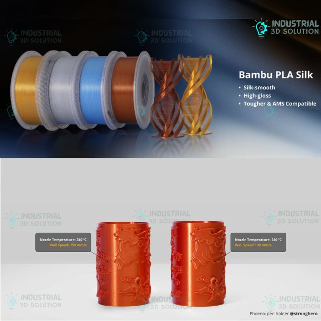 Genuine Bambu Lab filament with consistent quality and silk finish