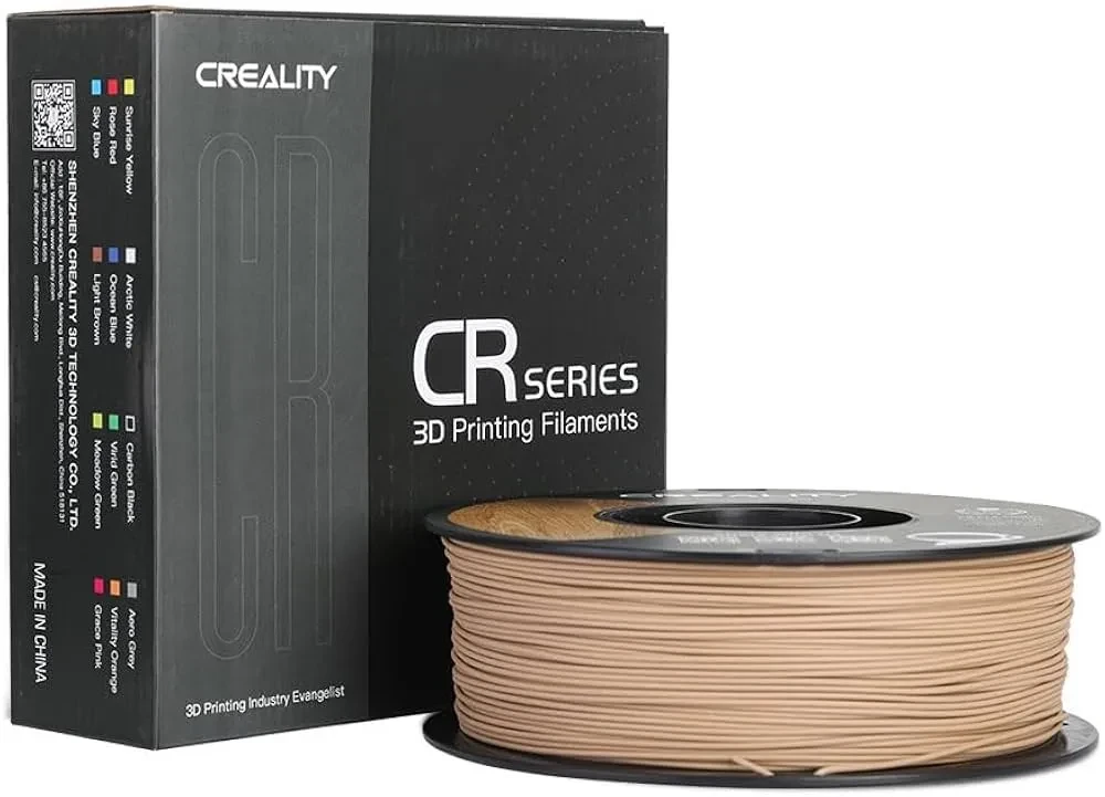 The CR-Wood Printing Filament 1.75mm 1KG is a specialized 3D printing material that blends PLA with fine wood particles to create prints with a natural, wood-like finish. This filament is perfect for artists, designers, and hobbyists looking to produce models that mimic the appearance and texture of real wood, making it ideal for decorative items, architectural models, and more.