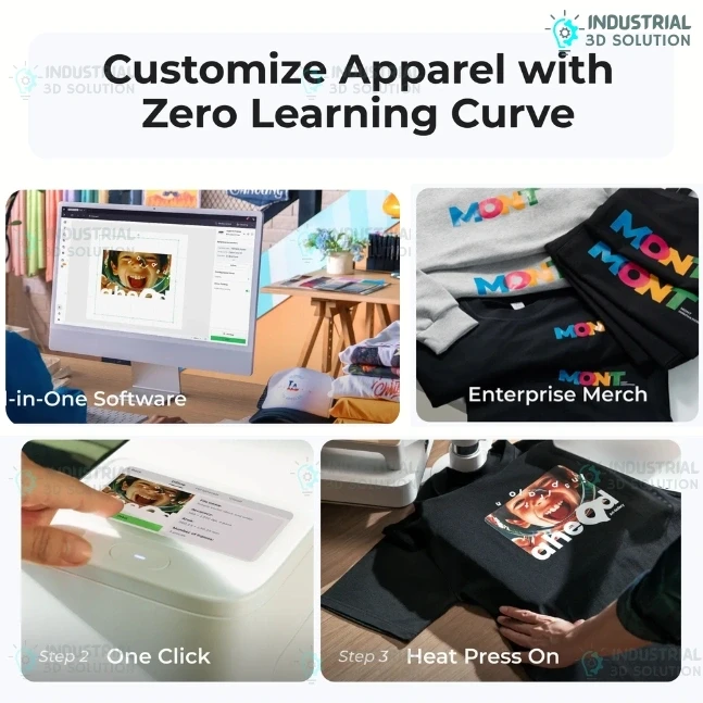 Featuring a one-click workflow, the system simplifies production by automating the printing process, with compatibility for powder application and curing using the xTool shaker oven. Equipped with dual Epson I1600 printheads, it delivers G7-certified color accuracy and consistent output for professional results.