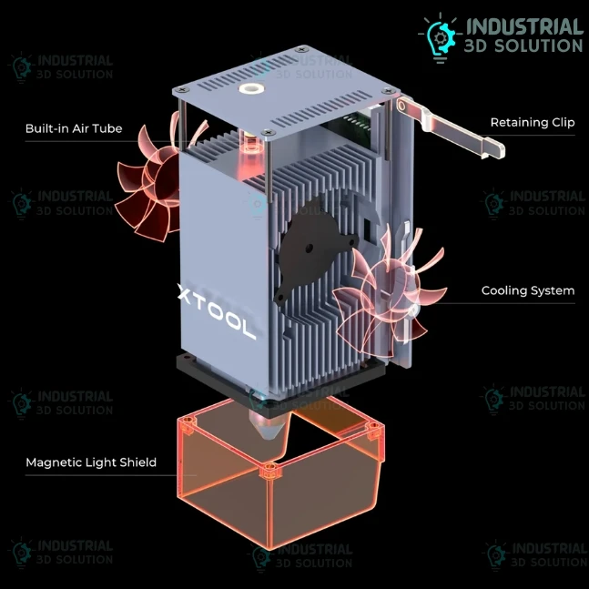 Engineered for high-speed performance and maximum efficiency, the xTool D1 Pro is equipped with an advanced heat dissipation system, ensuring optimal temperature control and prolonged operation without loss of performance. Its plug-and-play design, magnetic light shield, and built-in air assist make it easy to operate, maintain, and upgrade.