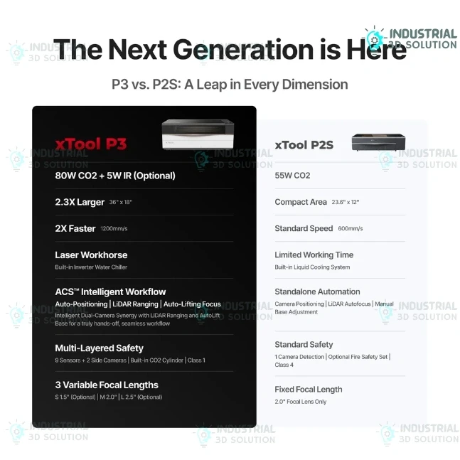 The xTool P3 Flagship 80W CO2 Laser Cutter & Engraver is a professional-grade laser machine designed for precision cutting, engraving, and prototyping. Ideal for engineers, hobbyists, makerspaces, and industrial workshops in Bangladesh, this laser cutter delivers exceptional performance on wood, acrylic, fabric, leather, metal, glass, bamboo, and over 300 compatible materials. With an 80W CO2 laser and optional 5W IR laser, combined with smart automation tools like ACS™ (Automated Creation System™) and dual-camera LiDAR positioning, it ensures accurate, repeatable, and efficient results. Compatible with xTool Studio, Lightburn, and other major software, the xTool P3 supports a wide range of file formats, making it perfect for signage, prototyping, industrial applications, and creative projects in Dhaka and across Bangladesh.