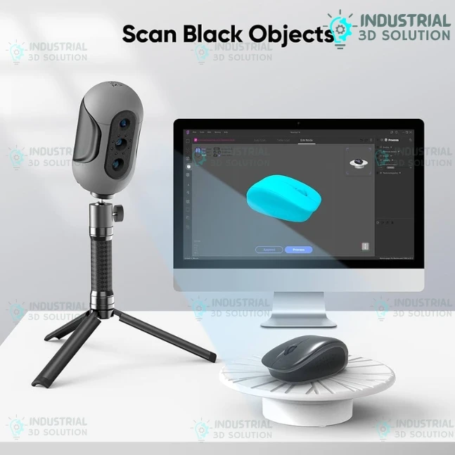 Mole utilizes advanced multispectral structured light technology, combining LED and Near-Infrared (NIR) light sources to ensure excellent optical compatibility across a wide range of object colors and materials. Even challenging black or dark objects can be scanned clearly and accurately, significantly improving scan success rates compared to conventional scanners. With a single capture range of 200 × 100 mm and a scanning speed of up to 10 FPS, Mole efficiently handles medium-sized objects while maintaining consistent precision.