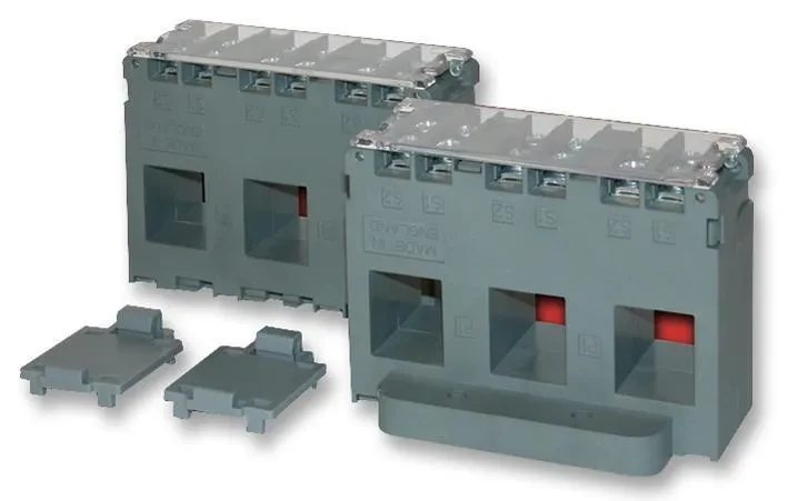 Miniature three phase current transformers suitable for primary ranges from 250A-630A with 5A secondary. Supplied with terminal cover and choice of fixings.