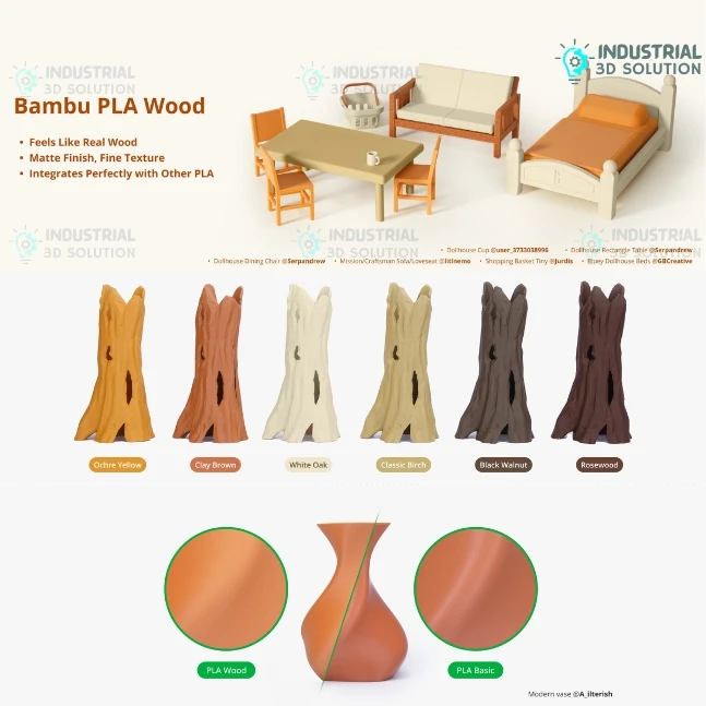 Decorative 3D printed wood-like models
