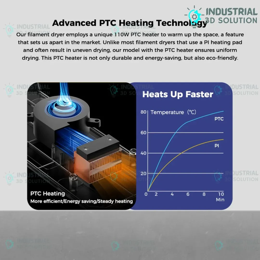 Reduces moisture-related print defects (stringing, warping, poor layer adhesion)