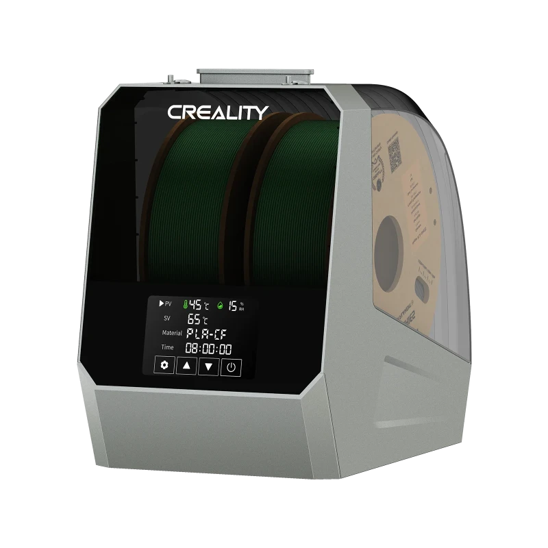 Ensure your filament stays dry and print-ready. The Creality Space Pi Filament Dryer Plus accommodates 2 × 1 kg spools, uses 360° PTC hot-air circulation for uniform drying, and features one-key presets for 12 filament types (PLA, PETG, ABS, TPU, Nylon, composites). Adjustable temperature (45–70 °C), 0–48h timer, real-time humidity & temperature display, and power-off memory. Compatible with 1.75 mm and 2.85 mm filament. Perfect for makers and small shops in Bangladesh to reduce stringing, nozzle clogs and failed prints.