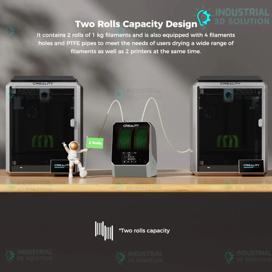 The Creality Space Pi Filament Dryer Plus is a professional-grade 3D printing accessory designed to keep your filament dry and moisture-free for optimal FDM/FFF printing. Equipped with dual spool support and 360° hot-air circulation, this filament dryer ensures consistent filament quality, reduces print defects like stringing and layer adhesion issues, and maximizes filament performance for high-precision 3D prints.