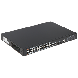 The Dahua PFS4226-24ET-240 is a 26-port managed PoE switch designed for high-performance networking in surveillance, business, and enterprise applications. With 24 PoE ports and 2 Gigabit SFP uplink ports, this switch efficiently delivers both power and data, making it ideal for IP cameras, wireless access points, and VoIP devices.