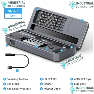 Included Accessories: Portable toolbox, soldering iron, power cable, soldering tips, cleaning sponge (exact contents may vary)