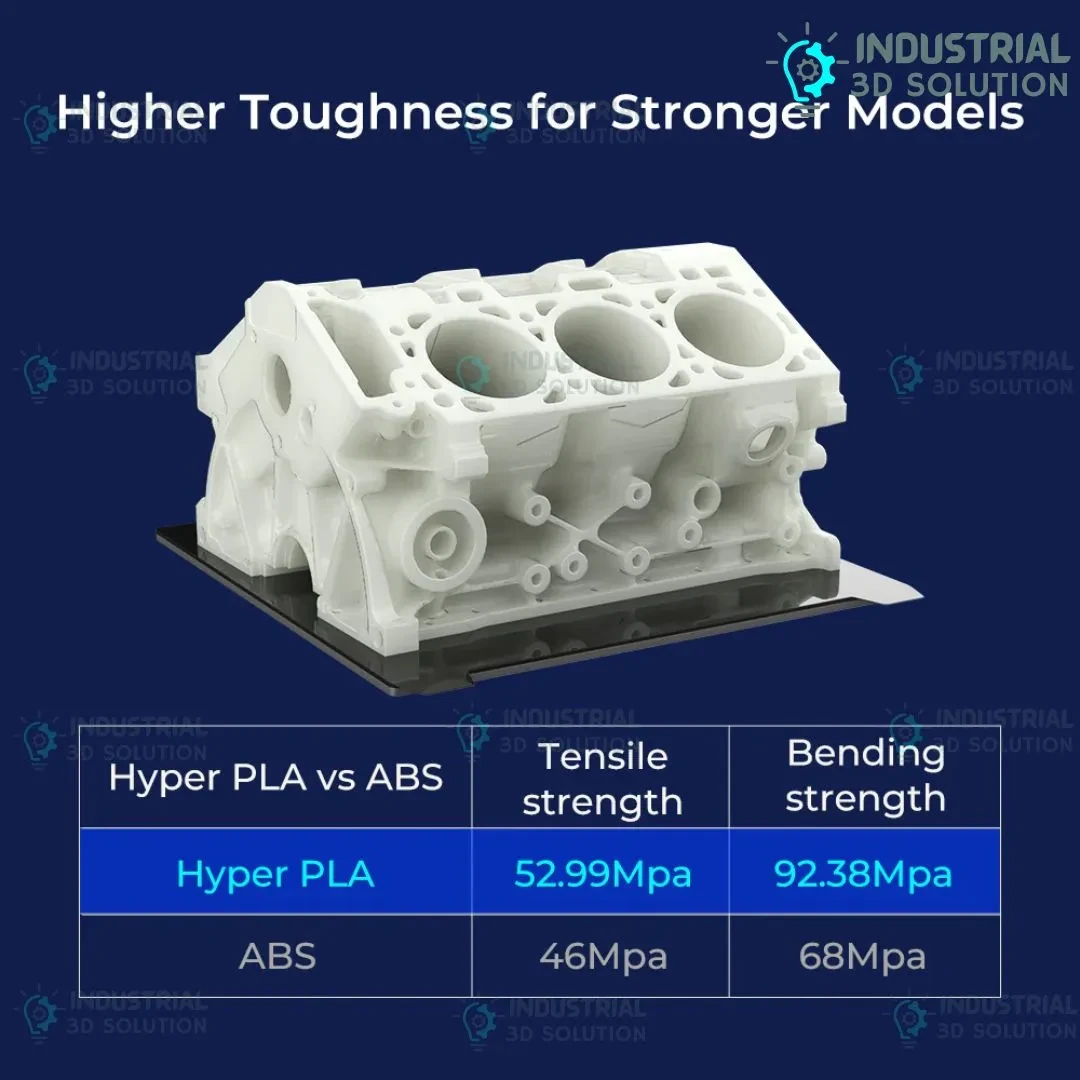 Thanks to its optimized PLA formulation, Hyper PLA White offers excellent dimensional stability, low warping, and easy printability. This makes it ideal for both beginners and advanced users. The bright white color delivers a clean, professional appearance, perfect for prototypes, presentation models, and everyday functional parts.