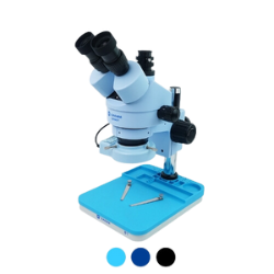 This stereo microscope has a 56-LED ring light that offers super widefield optics and 7X-45X zoom magnification power with a cool light illumination system. It is an ideal instrument for industrial inspection and/or biological lab applications. This microscope is perfect for gemologists, manufacturing engineers, lab technicians, and anyone in electronic and semiconductor industries.