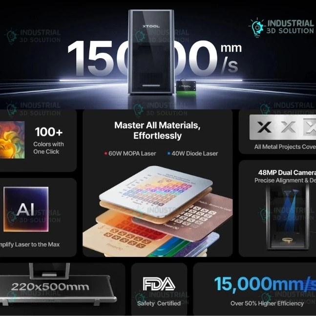 The xTool F2 Ultra 60W MOPA & 40W Diode Dual Laser Engraver Dual Laser Saved F2 Ultra Standalone is a high-performance industrial laser engraving and marking system designed for precision manufacturing, metal marking, and multi-material engraving. Equipped with a powerful 60W MOPA fiber laser and a 40W diode laser module, this dual laser engraver delivers exceptional versatility for both metal and non-metal materials.