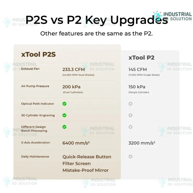 The xTool P2S 55W Desktop CO2 Laser Cutter is a high-precision, compact laser engraving and cutting machine designed for professional and hobbyist users in Bangladesh. Equipped with a 55W CO2 laser and dual 16MP HD cameras, it delivers sharper previews, finer precision, and superior cutting speed on wood, acrylic, fabric, leather, and over 300 compatible materials. The AutoPassthrough™ feature enables processing of materials up to 118 inches long, while 3D Curve™ engraving allows seamless marking on curved surfaces. With a 23.6" × 12" workbed, this desktop CO2 laser cutter is ideal for makers, engineers, signage workshops, and educational labs in Dhaka and across Bangladesh. Compatible with xTool Studio, Lightburn, and other leading software, it provides reliable, efficient, and professional-grade laser cutting and engraving in a user-friendly package.
